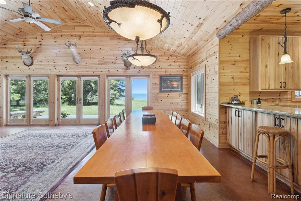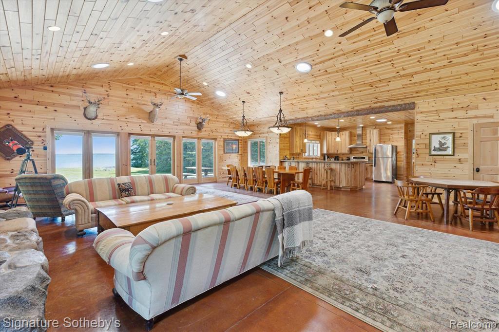 SUNUP LODGE, LLC. Few places in the world rival your own Lake Huron waterfront peninsula. With 710 acres, 3.5 miles of shoreline and 15 miles of drivable trails and roads. SUNUP Lodge is an ideal hunting retreat. Come indulge in the beauty of a custom crafted hunting lodge in Alpena, MI. A rare opportunity exists for someone who wants seclusion & privacy that seamlessly blends functionality & artistry with a newer custom construction. A voluminous open layout made for entertaining, relaxing after a long cold day in the woods hunting, fishing or swimming/boating in Lake Huron. This private peninsula includes 710 acres w/18,480 linear feet on Lake Huron. 15 miles of drivable trails & roads. PURE MICHIGAN. A generous sized kitchen complete w/five gas burner stovetop & oven. Plus, an extra electric range oven conveniently located in the laundry rm. Great Rm which spans the kitchen space & large enough to accommodate 100 people. The Great Rm is 34 x 32 complete w/large custom crafted stone FP & a real tree log for the mantel. Gorgeous water view, front & center, when opening the French door from the front vestibule. Unique to this Lodge is the knotty pine paneling both on the walls & ceilings throughout the whole Lodge. Floors are radiant heat thruout 5 BR’s (1 is primary), & 3 full BA’s plus the essential pet shower conveniently located in the laundry rm. Onsite includes a 40 x 40 metal pole barn, 1600 sq ft, which holds the essentials for maintaining this site w/a Kuboto tractor, excavator, a 4 x 4, & other machinery. Solar panels, whole house 12K generator, 4 car carport for trailers, shed, propane & gasoline tanks, 15 hunting blinds, & a lovely patio w/log seating overlooking the water. Property is privately owned w/minimum usage each year & has been maintained by a professional maintenance person. All measurements are approx. Pre-qualified buyers & proof of funds required before appts are confirmed. Parcel ID’s included in the sale: 01600100025100, 01403600000100, and 0160060004000.BATVAI |